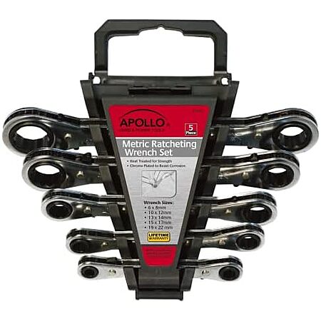 $16.89 | 5-Piece Apollo Tools Metric Steel Ratcheting Wrench Set (DT1213) at Amazon