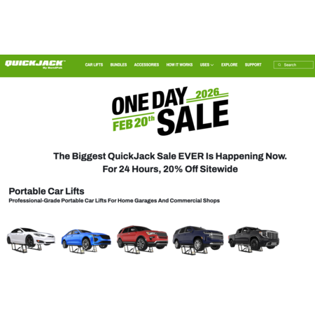 If you're in the market for an automobile lift, Quickjack is having a one day sale on Friday, February 20, 2026. The sale is 20% off everything sitewide.