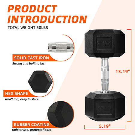 FlexWave Rubber Encased Hex Dumbbell – 10-50 lb Pairs, Black, Durable Non-Slip Weights for Home & Gym Workouts $18 - $83 @ Walmart