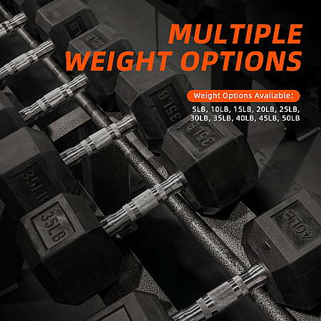 Model: FlexWave Rubber Encased Hex Dumbbell – 10-50 lb, Black, Durable Non-Slip Weights for Home & Gym Workouts