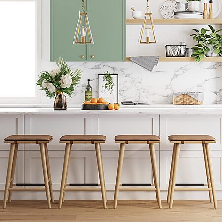 Amazon.com has Nathan James Barker Classic Counter Height Wood Barstool with Leather Removable Cushion, Backless Island 24" Bar Stool for Kitchen, Chestnut Brown, Set of 4 on sale for $175.17. Shipping is Free.