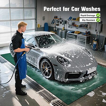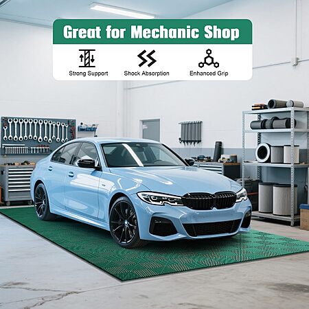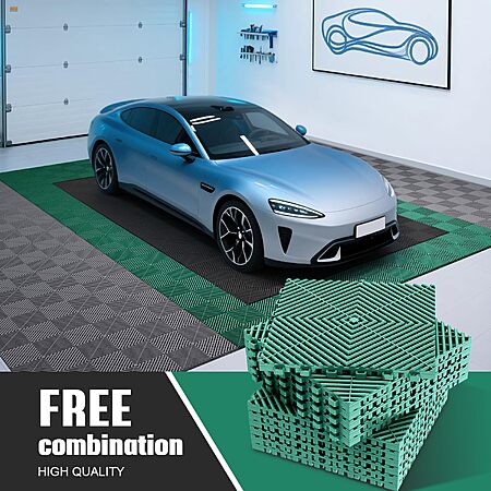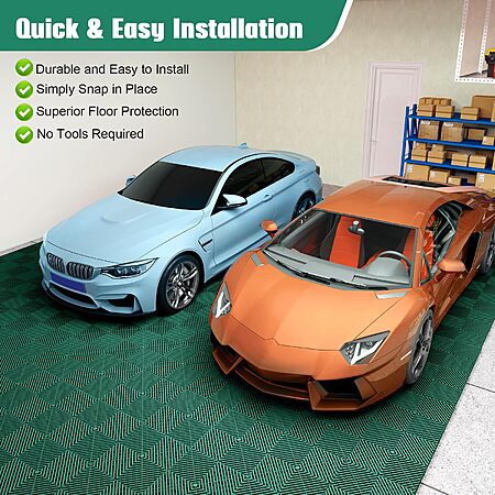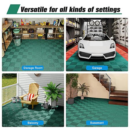 Amazon.com has 12-Pcs Interlocking Tile, 12" x 12" Indoor/Outdoor Self-Drainage Interlocking Floor Tiles, Non-Slip Heavy-Duty Polypropylene Splicing Flooring Tile for Garage Patio Pool Bathroom, Green on sale for $19.99.