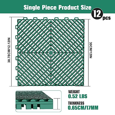 - 【Efficient Drainage】- Each interlocking drainage mat measures 12 x12 inches and comes with 0.65-inch (17mm) support pegs for drainage. Say goodbye to pesky surface water and enjoy a fresher, odor-free environment