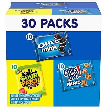 Model: Nabisco Cookies & Candy Variety Pack, SOUR PATCH KIDS Candy, OREO Mini Cookies, and Mini CHIPS AHOY! Cookies, 30 Snack Packs