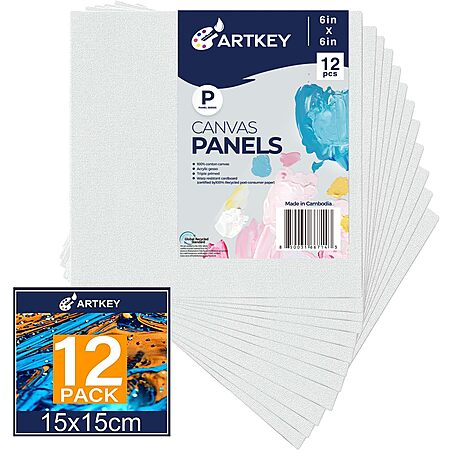 Artkey Canvas Panels 6x6 Inch 12-Pack, 10 oz Primed 100% Cotton White Blank Canvases for Painting, Square Flat Canvas Board for Oil Acrylics Watercolor & Tempera Paints $8.39