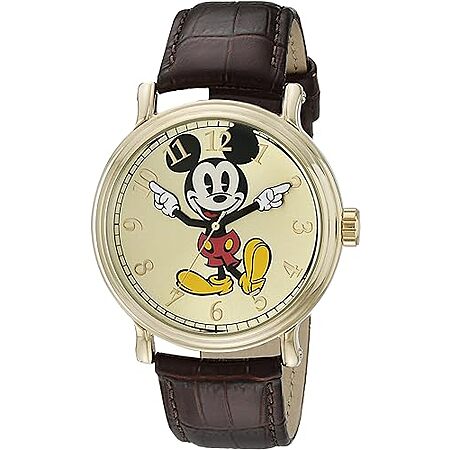 Disney Mickey Mouse Adult Vintage Analog Quartz Watch w/ Articulating Hands (Gold, Dark Brown) $14.99 + Free Shipping w/ Prime