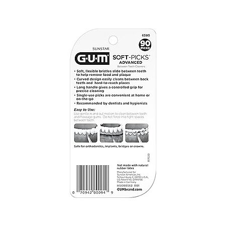 - Advanced Soft-Picks – Longer, curved handle with tapered tip for precision; ideal for small spaces, braces, bridges, or orthodontic appliances.