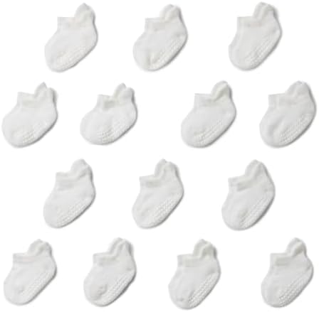 $8.87 | 14-Pairs Amazon Essentials Unisex Babies' Non Slip Grip Low Cut Socks (6-12 Months, White) at Amazon