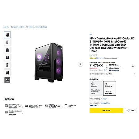 MSI - Gaming Desktop PC Codex R2 B14NVL5-449US Intel Core i5-14400F 32GB DDR5 2TB SSD GeForce RTX 5060 Windows 11 Home10 $1079