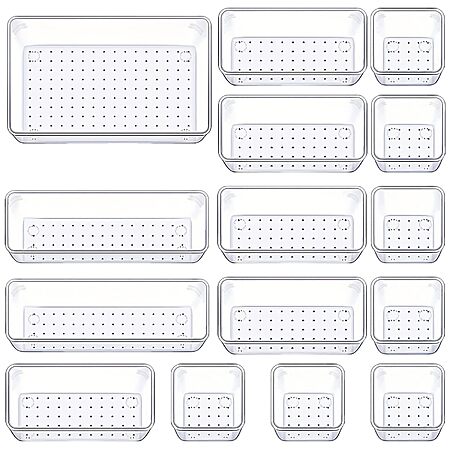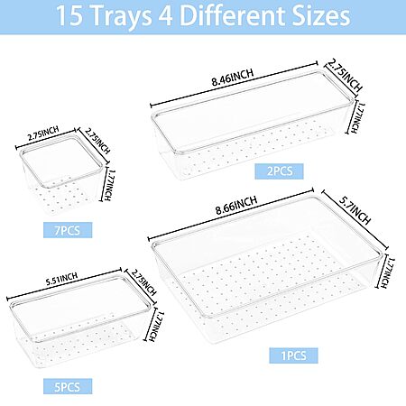Manalete Drawer Organizers Set of 15, 4 Sizes Clear Plastic Drawer Organizers and Storage Bins for Kitchen, Bathroom, Office, Dresser Desk Drawer Organizer Tray for Jewelry $9.49