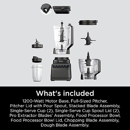Model: Ninja Blender, Kitchen System for-Smoothie, Frozen, Extract, Chop & Dough, Pitcher, 8-cup Food Processor Bowl, Smoothie Cup, Ninja Total Crushing, 1200 Watt, BPA Free, Dark Grey, BR601AMZ
