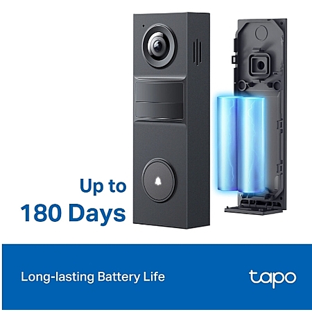 Monitor your front door with the Tapo D205 Battery-Powered Video Doorbell from TP-Link. This Wi-Fi doorbell is powered by a rechargeable 5200mAh battery that enables the doorbell to capture 2304 x 1296 resolution video at 15 fps. The doorbell features up to 25' of night vision, a 160° diagonal angle of view, and two-way audio thanks to a built-in microphone and speaker. An onboard slot supports microSD cards up to 512GB (available separately)