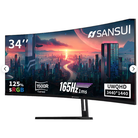 Sansui 34" Curved WQHD 165Hz LED AMD FreeSync Gaming Monitor, HDR, Black (model SG34C5QK, Item 24666210) for