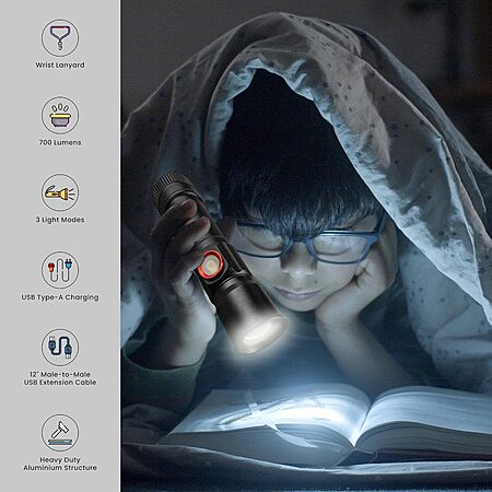 • Rechargeable: Built-in Lithium-Ion battery with integrated USB-A charging port (no cable required for direct plug-in).