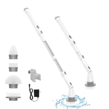 Electric Spin Scrubber, Cordless Cleaning Brush with High Speed up to 300RPM, Adjustable detachable Metal Extension Arm, 4 Replaceable Waterproof Cleaning Heads, 3 Adjustable Angles for Brush Heads, Power Shower Scrubber for Bathroom, Tub, Tile, Floor