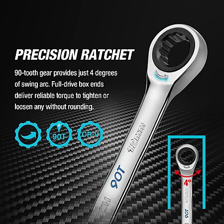 DURATECH 90-Tooth Ratcheting Wrench Set, Combination Wrench Set, 8-Piece SAE $22, Metric $23 at Amazon