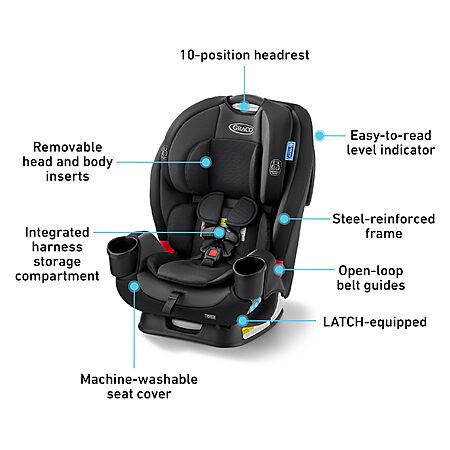 Graco TriRide 3-in-1 Reclining Car Seat, Kipling - Rear & Forward Facing Car Seat, Highback Booster, Adjustable Headrest $149.99