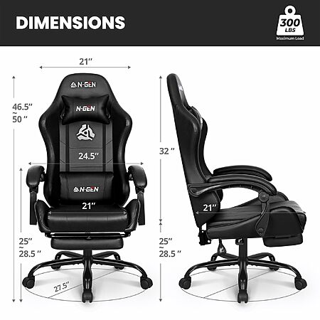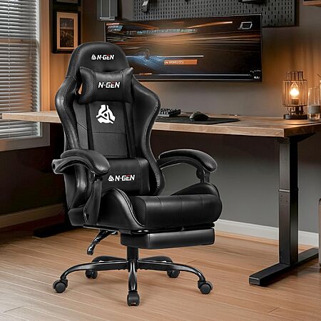 N-GEN GAMING Video Gaming Chair w/ Footrest (Black) $89.78 + Free Shipping
