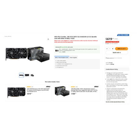 MSI RTX 5070 12G SHADOW 2X OC Bundle with MSI MAG A750GL PCIE5 + Resident Evil 9 $619.99 at Newegg