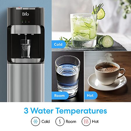 Brio Bottom Loading Water Cooler Dispenser for 5 Gallon Bottles - 3 Temperatures with Hot, Room & Cold Spouts, Child Safety Lock,with Empty Bottle Alert, Stainless Steel $169.99