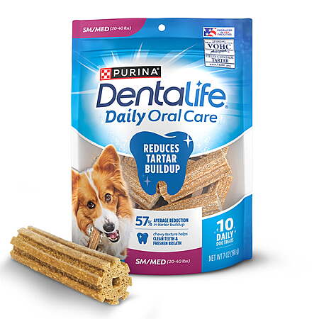 Purina DentaLife Daily Oral Care Small & Medium Dog or Mini-Toy Dog Treats with Chicken, 7.0 oz Pouch, 10-24 Count $3,94 get $2 Walmart Cash Lim 3 FS with Plus