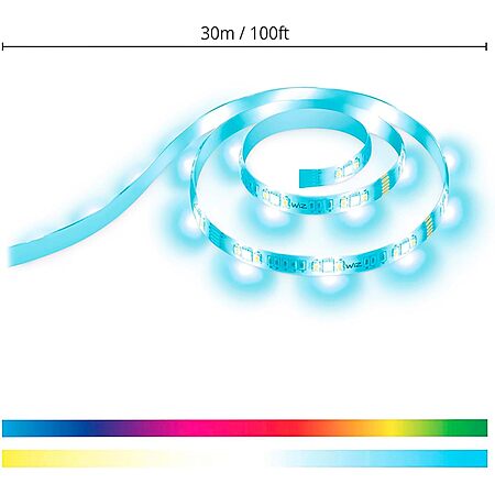 Amazon.com has WiZ Connected Smart Light Strip - Sunset to Sunrise Automation + Preset Light Modes + Control with Voice or App, Full Color RGB, 100 ft Cut to Fit on sale for $22.81.