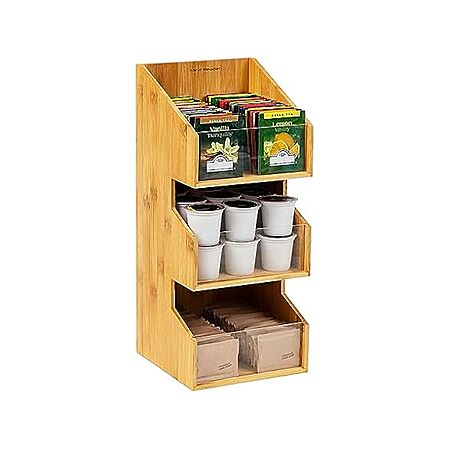 Woot! has Mind Reader Coffee Condiment Station, Countertop Organizer, Coffee Bar, Rayon from Bamboo, 6.5"L x 6.5"W x 15"H, Brown for $14.99.