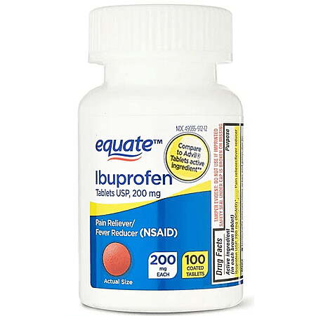 Equate Ibuprofen Tablets, 200 mg, Pain Reliever and Fever Reducer, 100 Count, Compare to Advil® $1.98 Free Ship Walmart+