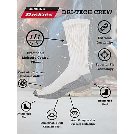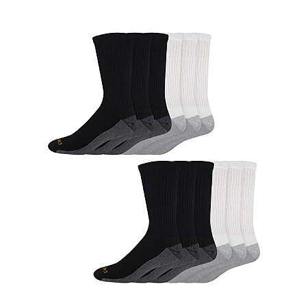 Dickies Men's Dri-Tech Crew Socks, 12 pack- Black/White Ext size 12-15 - $10.81