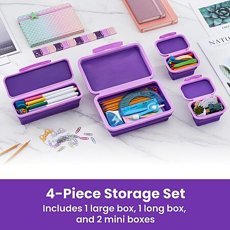 Model: LockerMate by Bostitch Flexi Storage Box 4 Piece Kit, Collapsible Pencil Case Design for Craft and School Supplies, Purple