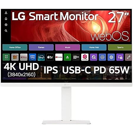 $279.99* | LG 27" Smart 4K UHD (3840 x 2160) IPS Computer Monitor (White) w/ 65W USB-C PD at Amazon