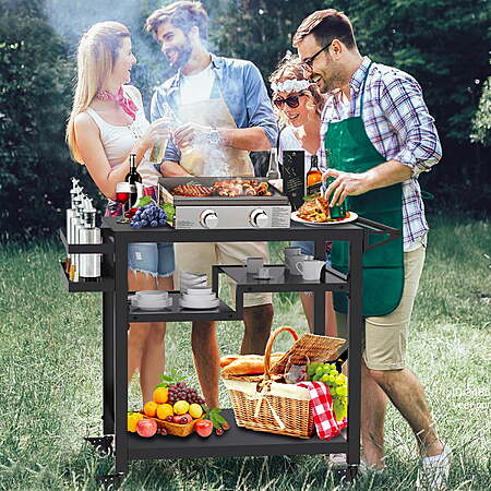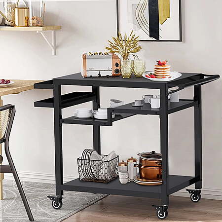 SUPER FIT via Walmart.com has RAXSINYER Rolling Dining Table with Three-Shelf, Outdoor Grill Table&Cart, Garden Patio BBQ Kitchen Food Prep Cart, 20"x 32", Black on sale for $62.99. Shipping is Free.