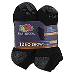 $7.30 12-Pack Fruit of the Loom Men's Dual Defense No Show Socks (Black, size 6-12)