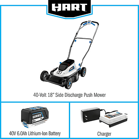 HART 40-Volt Cordless 18-inch Push Mower Kit, (1) 6Ah Lithium-Ion Battery, (1) Battery Charger $197