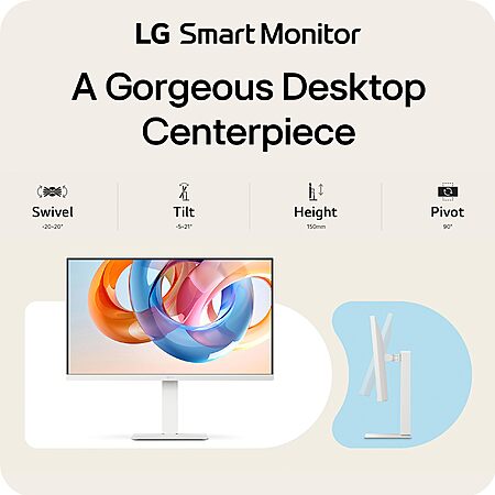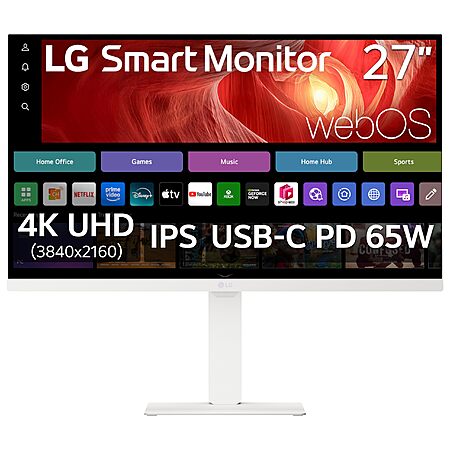 LG 27U730SA-W 27-Inch Smart 4K UHD (3840 x 2160) IPS Computer Monitor, HDR10, Built-in Speaker, Screen Share, Bluetooth, Remote Control, HDMI, USB Type-C PD 65W, White $279.99