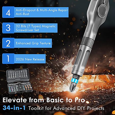 Prime Members: 34-in-1 Magnetic Ratchet Screwdriver Set (S2 Steel, Multi-Bit w/ Case) $18.59 + Free Shipping