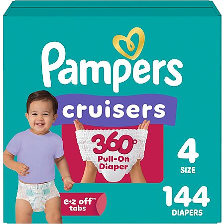 Pampers Diapers - Cruisers 360 - Size 4, 144 Count, Babyproof up to 100% Leakproof Pull-On Diaper $41.42