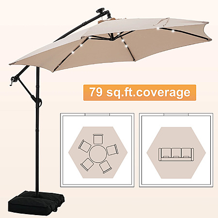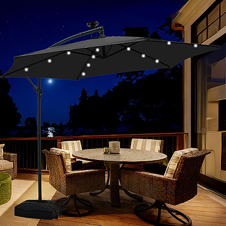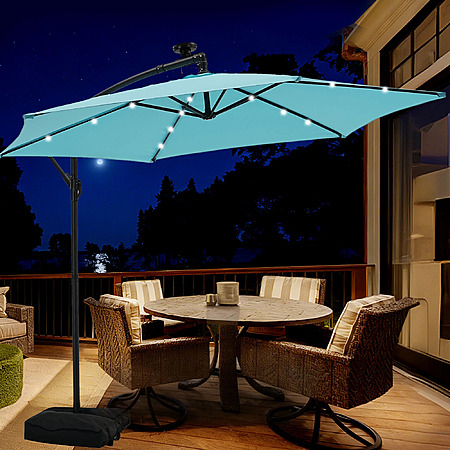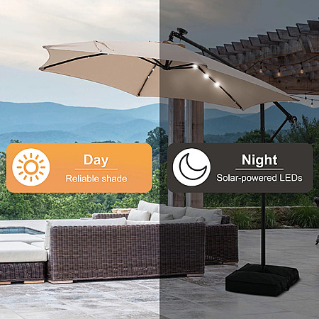 Autlaycil 10 ft Cantilever Offset Outdoor Patio Umbrella with Base Stand Rotate and Tilt,24 Solar LED Lights (Various Colors)