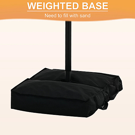 Key item features- Base Included: This outdoor umbrella comes with a base that can hold up to 130 lbs of sand for stability.
