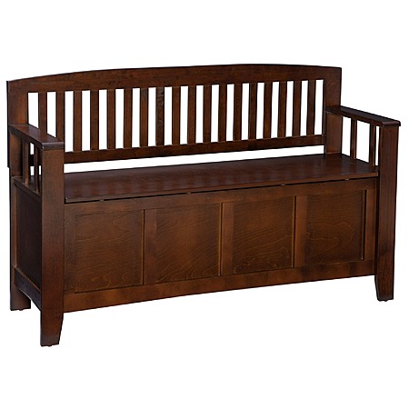 50" Linon Cynthia Slat Back Wood Bench w/ Flip Top Storage (50"L x 17.25"D x 32"H, Walnut Brown) $107.09 + Free Shipping