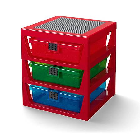 • Features 3 drawers in see-through red, green and blue, each with an integrated 4x6 stud LEGO baseplate for kids to build on.