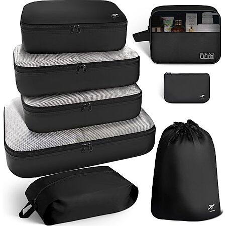 Prime Members: 8-Pc Hotor Light Travel Packing Cubes for Suitcases (Black or Pink)