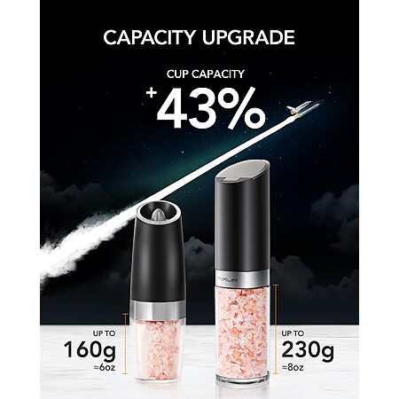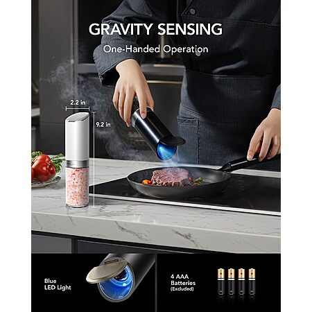 Forlim Gravity Electric Salt & Pepper Grinder Set w/ Dust Cover (White & Black) $5.99 + Free Shipping w/ Prime or on $35+