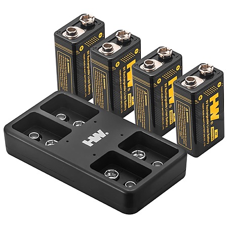 4-Pack HW 3600mWh Rechargeable 9 Volt Battery w/ Charger (Over 1000 charges / Quick Charging in 2.5 hours) $19.49 + Free Shipping w/ Prime or orders $35+