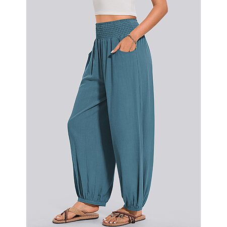 Women Linen Pants Summer Casual Loose Elastic Waisted Palazzo Pants 2025 Beach Travel Vacation Outfits, all colors and sizes - amazon - $9.99