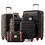 LONG VACATION 6 Piece Luggage Set Carry on Suitcase with ABS+PC hardshell, Spinner Wheels & YKK Zipper TSA Lock (BLACK-BROWN, 6 piece set) $147.99