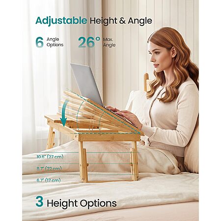 $32.28: SONGMICS Bed Laptop Desk Folding Bed Tray for Laptop up to 15.6 Inches Adjustable Angle Height Portable Bamboo Drawer Light Bamboo ULLD01N @ Amazon