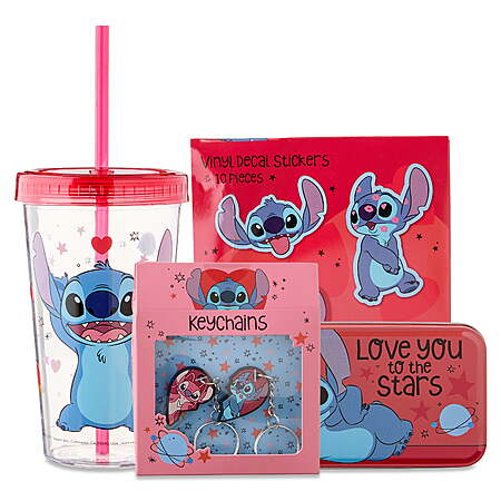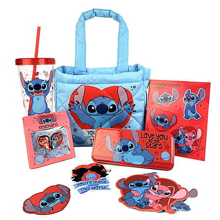 Gift this Stitch Puffy Bag Valentines Gift Set and let them take the playful spirit of Stitch wherever they go! This gift set features a soft and cushioned puffy tote bag perfect for carrying everyday essentials! Also includes a tumbler with straw for refreshing drinks on the go, vibrant stickers that will brighten their day, cute keychains and a practical pencil case to organize their belongings—all showcasing the lovable and mischievous Stitch.