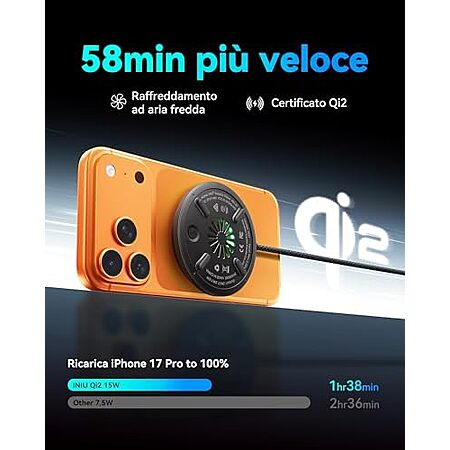 Model: INIU Qi2 Certified Magnetic Wireless Charger, 15W Fast MagSafe-Compatible Wireless Charging Pad with Cooling Fan, Only for iPhone 17 16 15 14 13 12 Series, AirPods, and More (Adapter Included)