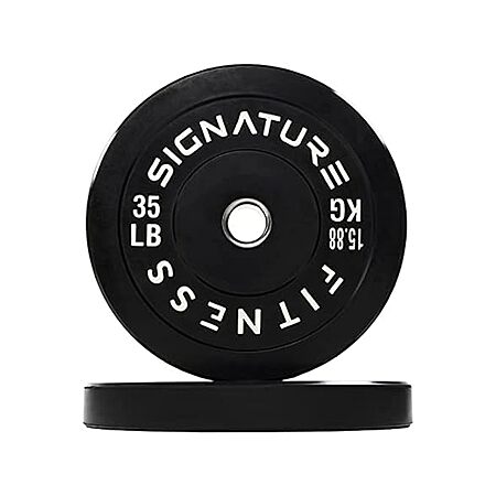 $49.99*:Signature Fitness Fitvids 2" Olympic Bumper Plate Weight Plates with Steel Hub, 35lbs, Pair at Woot!